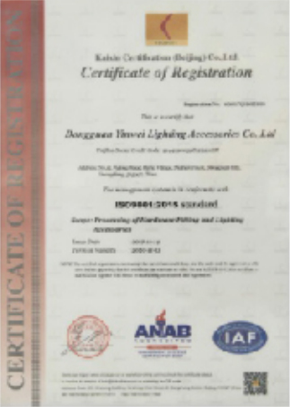 The factory has passed the IS9001:2015 quality system certification